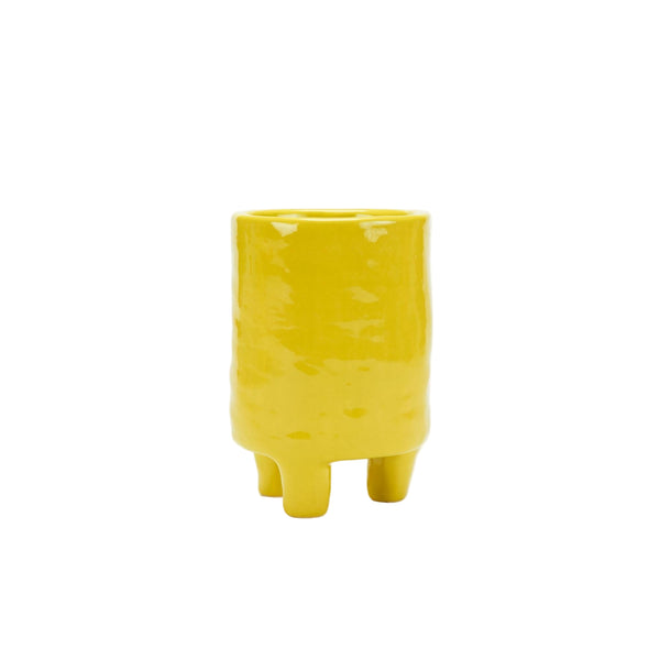 Medium Three legged Planter in chartreuse yellow by Atelier Burrata. Each piece is unique and made to order by hand with love in the Netherlands shapes and dimensions will vary slightly.