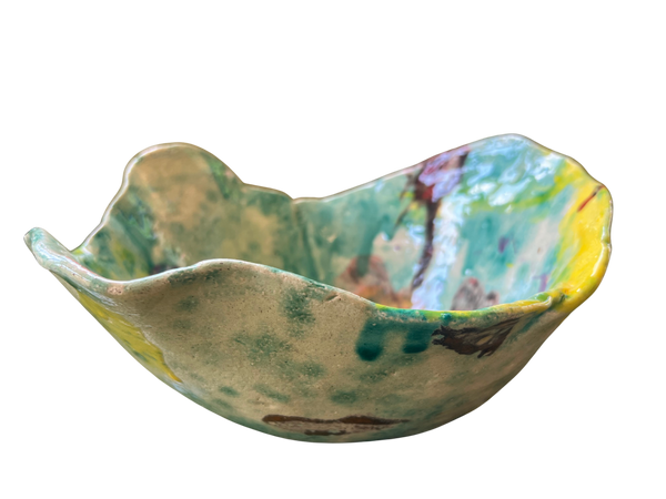 Large handmade blue, yellow & green ceramic bowl by Mallorcan multidisciplinary artist Teresa Monmas. You can read more about Teresa and her work here.