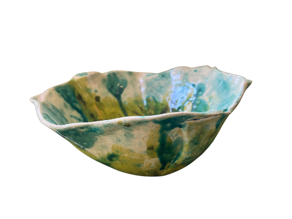 Large handmade blue, yellow & green ceramic bowl by Mallorcan multidisciplinary artist Teresa Monmas. You can read more about Teresa and her work here.