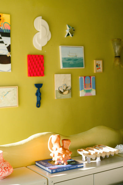 Handmade painted wall sculpture by Copenhagen based Artist Tilde Grynnerup. Grynnerup’s early influences include Mèret Oppenheim and Louise Bourgeois. You can read more about Tilde and her work here.